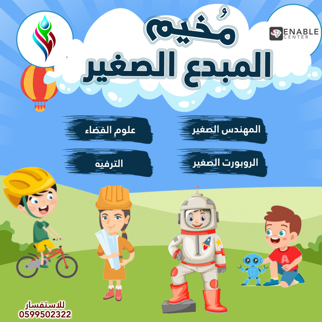 مُخيم “المبدع الصغير” والذي تنفذه جمعية إعمار للتنمية والتأهيل بهدف ترفيه وتعليم الأطفال، واستثمار أيام الإجازة الصيفية المتبقية بشكل إيجابي وفعَّال، حيث يَستهدف المُخيم الفئة العمرية من 6 سنوات وحتى 16 سنة مِن الذكور والإناث، ويحتوي على أربع “واحات” متخصصة ومُميزة بما تحتويه مِن فقرات وأنشطة تعليمية و ترفيهية.